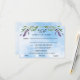 A white and blue summer sky as background, black text. Decorated with lavender florals and eucalyptus greenery. Personalise and add a reply by date. Add your menu selections/choices.