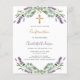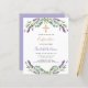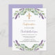 A white background decorated with lavender flowers and eucalyptus greenery. Personalise and a name and details.