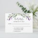A white background, black text. Decorated with lavender florals and eucalyptus greenery. Personalise and add a reply by date.