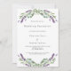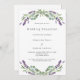 A white background decorated with lavender flowers and eucalyptus greenery. Personalise and your names and details.