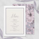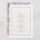 Bring timeless elegance to your wedding table with this Lavender Grey Floral Menu. Featuring soft botanical illustrations, a refined double-frame border, and classic serif calligraphy, this design adds a romantic and sophisticated touch to any reception decor. Perfect for modern, garden, or classic weddings in muted tones. Fully customizable to match your event details.
