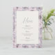 Bring timeless elegance to your wedding table with this Lavender Grey Floral Menu. Featuring soft botanical illustrations, a refined double-frame border, and classic serif calligraphy, this design adds a romantic and sophisticated touch to any reception decor. Perfect for modern, garden, or classic weddings in muted tones. Fully customizable to match your event details.