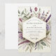 Evoke a sense of romantic enchantment with this delicate watercolor design. A gentle arrangement of lavender sprigs, purple wildflowers, and soft sage green foliage blooms against a creamy background. The painterly style creates a soft, dreamy, and ethereal atmosphere perfect for a springtime or rustic affair. This beautiful botanical artwork sets a serene and elegant tone for your special day.