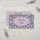 A lavender and grey leopard print decorates the front of this retro style business card. Use this business card for a bakery, boutique, shop, restaurant, catering business, salon, hair stylist, hair salon, teacher, designer, decorator, beauty salon, makeup artist, etc...Customise the card to suit your needs. The designs are from original art.