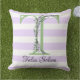 Lavender light purple white strips monogram cushion
