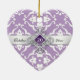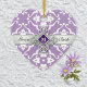 A heart-shaped wedding keepsake ornament in a lavender damask floral motif adorned with a white lily pattern from the Art Nouveau period. What truly sets this ornament apart is the subtle touch of sparkle with a faux amethyst gemstone and silver ribbon. Add your names to the front and on the reverse insert your wedding date.