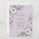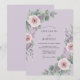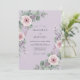This elegant design features a soft lavender backdrop adorned with delicate dusty pink roses and lush sage green eucalyptus foliage. Small purple floral sprigs add a touch of texture to the romantic botanical arrangement. Perfect for an ethereal spring or summer event, the painterly style creates a serene and sophisticated aesthetic.