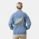 This denim jacket features a heartwarming painting inspired by a cherished childhood memory. When I was little, my family and relatives traveled to Hokkaido together. It was my very first time on a plane, and we visited a famous lavender field that left a lasting impression on my young heart. The endless purple carpet of flowers felt magical—so vivid and vast that I thought I might be swallowed by its beauty.