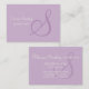 Your fully customisable professional business card featuring your name and your dark lavender elegant initial on an light lavender coloured background. On the back your decorative initial is repeated as a medium lavender background to your contact data.