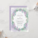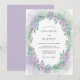 This design features a delicate wash of watercolor in soft shades of lavender and sage green. An ethereal wreath of petite wildflowers and willow leaves creates a romantic, airy atmosphere. The soft, blended edges and pastel palette evoke a sense of serene, springtime elegance.