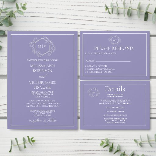 Lavender Monogram Crest Wedding Invitation SuiteDesigned by Phyllis Waugh