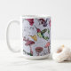 This is our customisable lavender coffee mug, the perfect Birthday, Bridal Shower, Holiday or Mother's Day gift. This stylish mug features a beautiful hand-drawn enchanted garden pattern with a hummingbird, flowers & mushrooms pattern and a customisable monogram & name on the front. Whether for enjoying her morning coffee or sipping her favourite tea in the afternoon, this mug is sure to make every sip extra special.