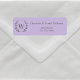 Lavender colored background. Decorated with a warm gray wreath. Personalize and add your name, address and family monogram initial. Warm gray colored text.