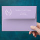 A lavender colored background. Decorated with a white colored wreath. Personalize and add your names, address and monogram, initials. White text.