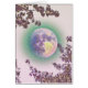 This is a mixed media piece titled lavender moon: with an emerald glow and framed by tree branches.