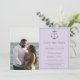 This Nautical Monogram Photo Save the Date Announcement comes with a simple text design, a simple nautical anchor for the bride and groom monograms in a modern outlined box waiting for your photo and your wedding details to customise. Additional colours available with this design. Perfect for the couple who are having a coastal wedding.