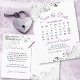 This beautiful save the date postcard will give your friends and family advance notice of your upcoming wedding. It features a clever design with a custom calendar where you can put a heart around your wedding date. The background is white, with light purple or lavender and grey text and decorative silver grey faux foil frilly accents in the corners. The back has a cute graphic reading "pencil us in" with space for your own custom note.