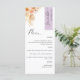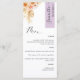 Why spend in place cards and menu cards when you can have an elegant All-in-one elegant Menu personalised with each guest name! Contemporary, simple and elegant design with exquisite watercolor floral detail in a beautiful blend of peach, orange, blush, dusty rose, cream and champagne hues. Modern hand written calligraphy elements. Stripe on the top right corner in lavender purple tone with guest name in black. Back in same lavender purple as stripe. Ability to change both stripe colour or back by selecting "customise further". NOTE: please an individual order for each menu by adding guest name into menu, add menu into shopping cart; then come back to menu, add second guest name, add menu to shopping cart...continue with this process with all guest names on your list. Zazzle does not receive guest names lists to print. For short first guest names add with your keyboard spacebar a few empty "spaces" before name to centre. Design available in a variety of colour choices. Part of our "Peach Floral Delight in Lavender Purple" collection with a variety of coordinating products available. Visit the entire collection at: https://www.zazzle.com/collections/peach_delight_floral_and_lavender_purple-119272840408758311