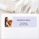 Personalise and add your photo, name and address. Black letters. Lavender, violet coloured background.