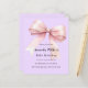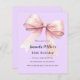 A soft lavender, purple coloured background, decorated with a large pink bow. Personalise and add a name and party details.
