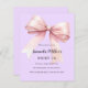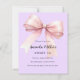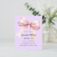 A soft lavender, purple coloured background, decorated with a large pink bow. Personalise and add a name and party details.