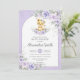 Lavender Purple Floral Sweet Lion Cub Baby Shower Invitation