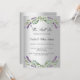 A faux silver looking background decorated with lavender flowers and eucalyptus greenery. Personalise and your names and details.