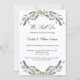 A white background decorated with lavender flowers and eucalyptus greenery. Personalise and your names and details.