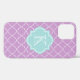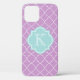 Lavender purple / lilac trellis lattice pattern iPhone 12 cover Elegant quatrefoil pattern with custom monogram K letter. Add your personalised name initial. Girlie vector design. Cute moroccan lattice design.