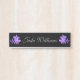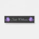 Dark Lavender Purple Orchids on Black Background with Silver Text Hanging Door Desk Nameplate Name plate