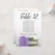 These beautiful table number cards will make it easy for your guests to find their seats at your wedding reception. They feature a simple yet elegant design with script calligraphy lettering and a single long-stemmed lavender purple coloured rose lying on its side reflecting in water. The card includes a seating chart with 10 names. There is also space for the couple's names and wedding date. This card is available in a variety of sizes and is larger than our standard table number cards.