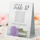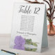 These tent table number signs are not only beautiful, they even include a list of names for the guests at each table, making it easy for your guests to find their seat at your wedding reception. The design is both elegant and romantic featuring a single light purple or lavender coloured rose lying on its side reflecting in water with waves and ripples. The title is in lacy script calligraphy with bold numbers so your guests can easily find the right table. There is room for the names of the couple and the wedding date.
