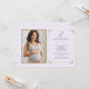 A sophisticated photo invitation for a special mum's baby shower. The soft lavender background features a photo window and a stylish gold frame for your personalisation, embellished with a lavender rattle. Want to save money? Print this invitation on the Basic, square corner paper.