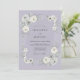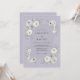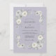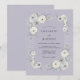 This design features a soft lavender background adorned with delicate white anemones and pale greenery. These ethereal botanical elements create a serene and romantic mood, perfect for a spring season. The palette focuses on muted purples, crisp whites, and soft greys for a timeless aesthetic. Watercolor florals add a touch of artistic elegance.