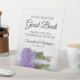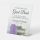 This beautiful pedestal sign will invite your wedding guests to sign your guest book. Features an elegant design with a single long-stemmed lavender purple coloured rose lying on its side mirrored in a pool of water. There is space for the names of the couple as well as the wedding date.