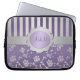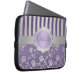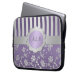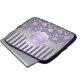 This personalised purple and silver floral damask and stripes laptop sleeve has text boxes for you to customise with your own name, initials, business name, or other text. If you need any help customising, please email niteowlstudio@gmail.com.