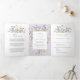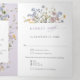 This elegant lavender wedding all in one invitation features a vertical cascade of delicate wildflowers in soft pastel tones. The botanical artwork blends muted purple hues, airy meadow blooms, and subtle foliage accents for a romantic yet minimalist look. The clean layout paired with whimsical florals creates a chic and timeless design perfect for modern couples.