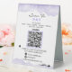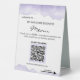 Energetically Enhanced watercolor ABSTRACT Purple LAVENDER ON WHITE Table Tent using QR Code for Payment.