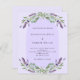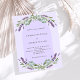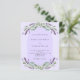 A violet background decorated with purple lavender flowers, eucalyptus greenery and an arch frame. Personalise and your names and details.