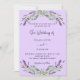 A violet background decorated with lavender flowers and eucalyptus greenery. Personalise and your names and details.