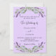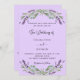 A violet background decorated with lavender flowers and eucalyptus greenery. Personalise and your names and details.