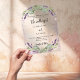 For an elegant and romantic wedding. A transparent, clear arch shaped background decorated with lavender florals, eucalyptus greenery and violet faux sparkles. Personalise and add your names and details.
