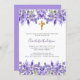 A white background decorated with watercolored lavender flowers and a golden cross. Personalise and a name and details.