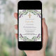 A white background decorated with lavender flowers and eucalyptus greenery. Personalise and a name and details.