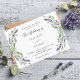 A white background decorated with lavender flowers and eucalyptus greenery. Personalise and your names and details.