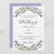 A white background decorated with lavender flowers and eucalyptus greenery. Personalise and your names and details.