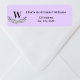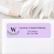 A violet coloured background. Decorated with a lavender and eucalyptus greenery wreath. Personalise and add your name, address and family monogram initial.