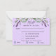 A violet background, black text. Decorated with lavender florals and eucalyptus greenery. Personalise and add the reply by date and menu selections.
