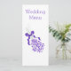 Wedding dinner menu lavender design. Customise this lavender coloured menu with your wedding details. Should you require any help with customising then contact us through the link on this page. Lavender design personalised wedding dinner menu