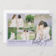Beautiful wedding thank you card in pastel purple featuring a photo collage to which you can add five of your wedding photos. Thank you is written in a gorgeous calligraphy script in the bottom right corner, with loops. Add your names and wedding date and location in an elegant font. The back is lined so you can write a personal message by hand.